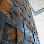O Revestimento Carbon Cimentício imita a madeira queimada, combinando rusticidade, sofisticação e resistência em um design de baixa manutenção.