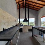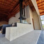 A régua de concreto travertino combina robustez e elegância, criando um visual sofisticado e durável para ambientes internos e externos.
